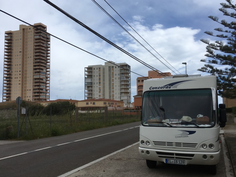 Nun ist es vorbei mit den idyllischen Dörfern und wir verstehen allmählich weshalb die Leute, die wir unterwegs kennengelernt hatten, uns erzählt hatten, dass die Mittelmeerküste extrem hässlich wäre. Alles ist zugebaut mit Hochhäusern, welche anscheinend Feriendomiziele sind. Da jetzt noch immer keine Saison ist, steht alles leer. Ich habe mal 5 Jahre im Osten gewohnt und diese Häuser hier erinnern doch sehr an die Plattenbauten dort in den 90 ziger Jahren.