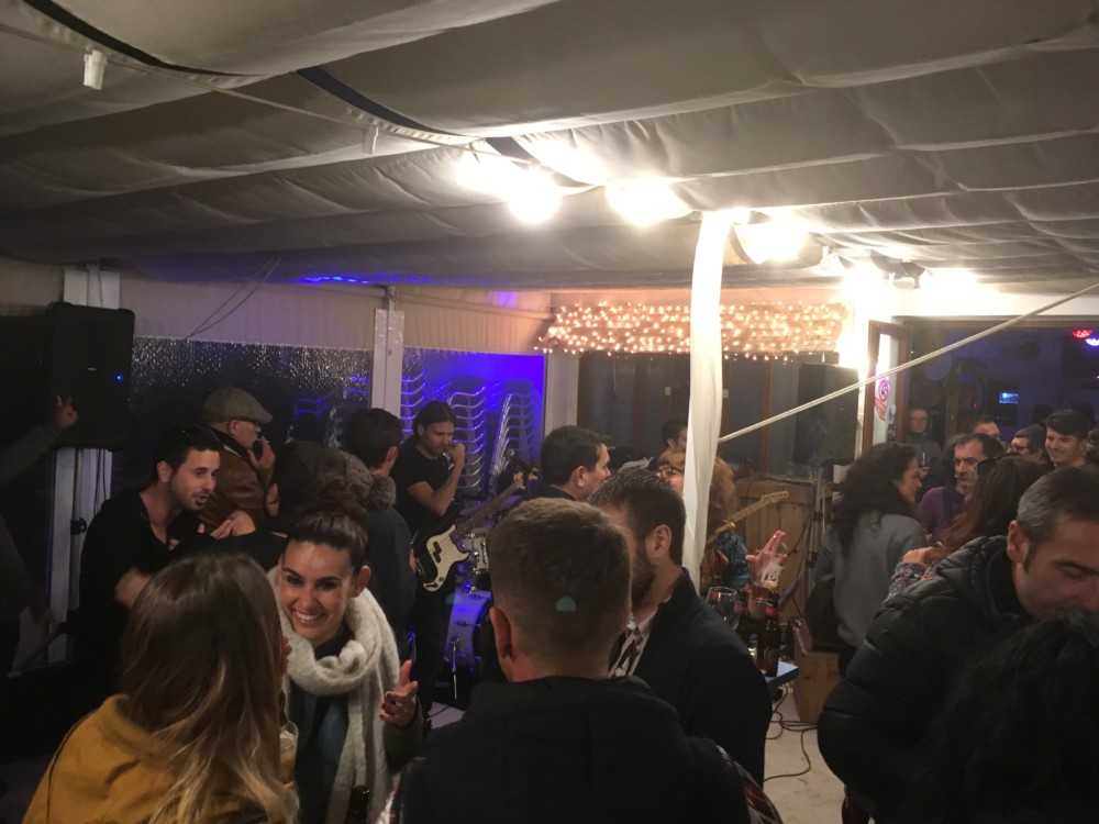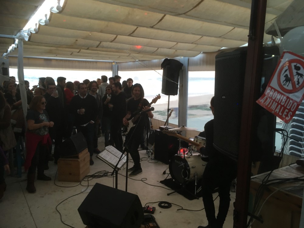 Man tut ja alles um seine Bräune zu erhalten und Bernd fragt mich über eine Stunde unser erlerntes Spanisch ab. Heute bin ich in Hochstimmung und habe supergute Laune. Das kann nur an der Sonne liegen!!! Wir bleiben den ganzen Tag draussen, geniessen das schöne Winterwetter und spielen Scrabble. Bernd gewinnt. Am späten Nachmittag zieht Wind auf, wir ziehen uns wärmer an und machen einen Spaziergang. Nach 20 Minuten kommen wir zu der Kneipe „La Torre“. Dort ist mächtig was los. In einem Zelt, dass mit der Kneipe verbunden ist, spielt eine klasse Liveband und wir werden natürlich magisch angezogen.